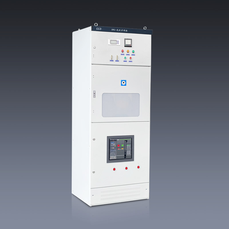主要用于交流400V低壓系統(tǒng)的分布式光伏發(fā)電項(xiàng)目,低壓光伏并網(wǎng)柜主要有防孤島保護(hù)裝置(還可加裝故障解列裝置、電能質(zhì)量在線監(jiān)測(cè)裝置)、隔離刀開(kāi)關(guān)、并網(wǎng)斷路器、防雷器、溫濕度控制器、電能計(jì)量裝置和柜體等組成。柜型及柜體尺寸根據(jù)現(xiàn)場(chǎng)情況定做為MNS,GCS,GCK,GGD這幾種。